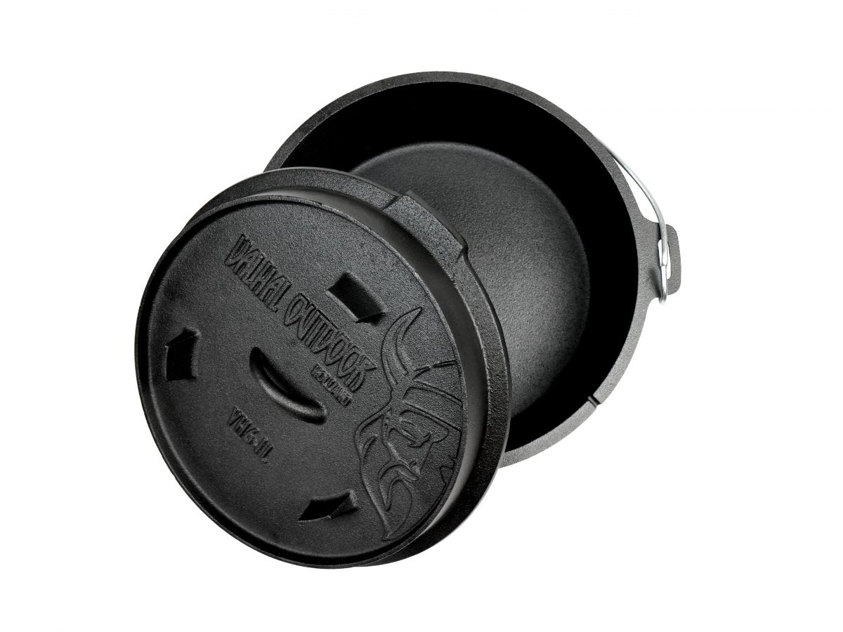 Dutch Oven VH6.1L je izdelan iz litega železa, nima nogic na dnu, pokrov pa ima povišan rob in nogice. Lito železo je material, ki odlično prevaja in zadržuje toploto ter je primeren za vse vire toplote.