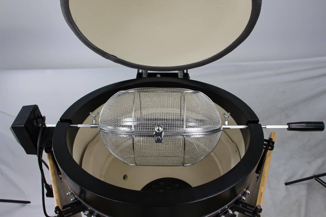 Ta mrežasta vrtljiva košara za raženj je idealen dodatek za vse lastnike Kamado žarov, ki uporabljajo motorni raženj. Omogoča vam pripravo manjših kosov hrane, ne da bi jih bilo treba ročno obračati ali nenehno nadzorovati.